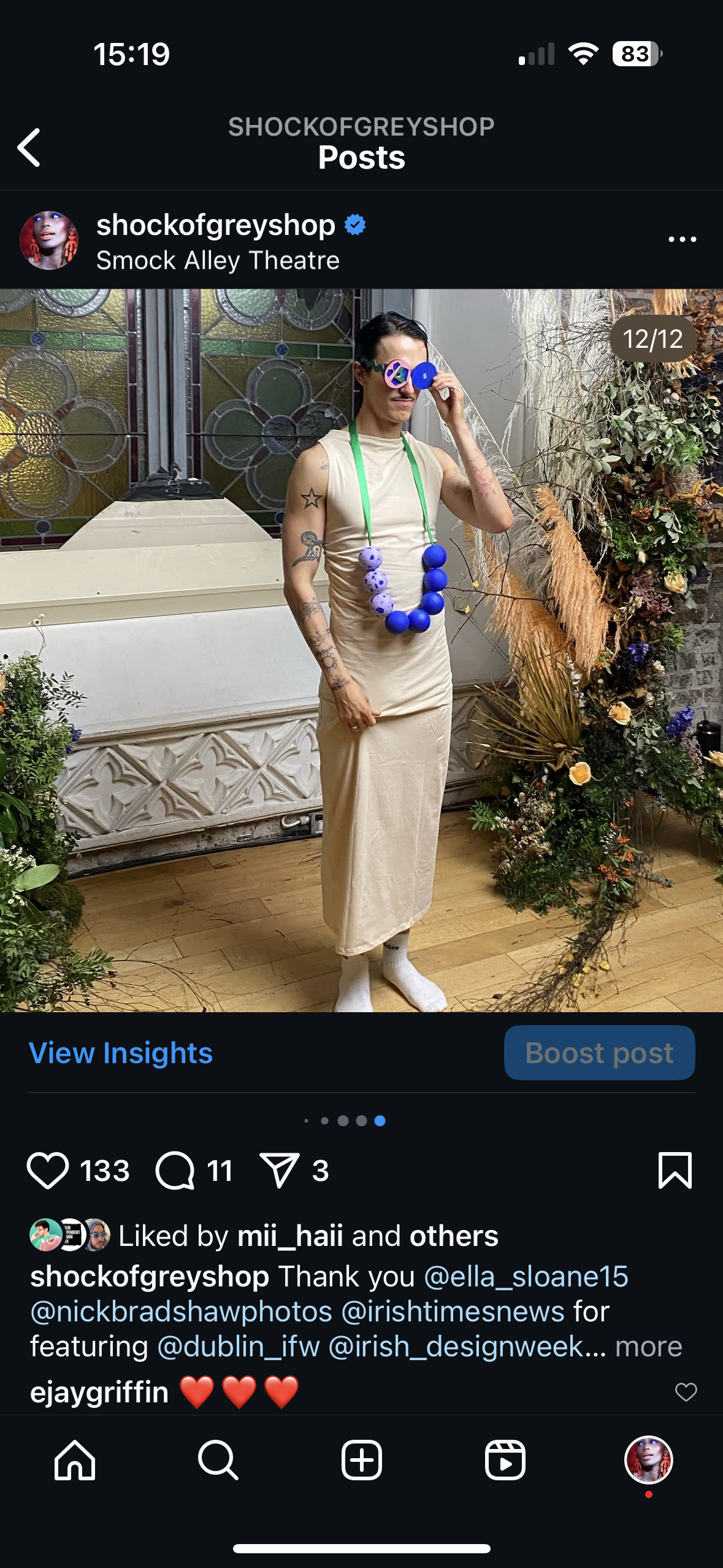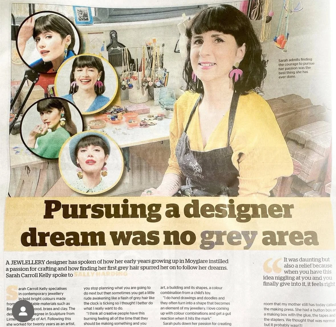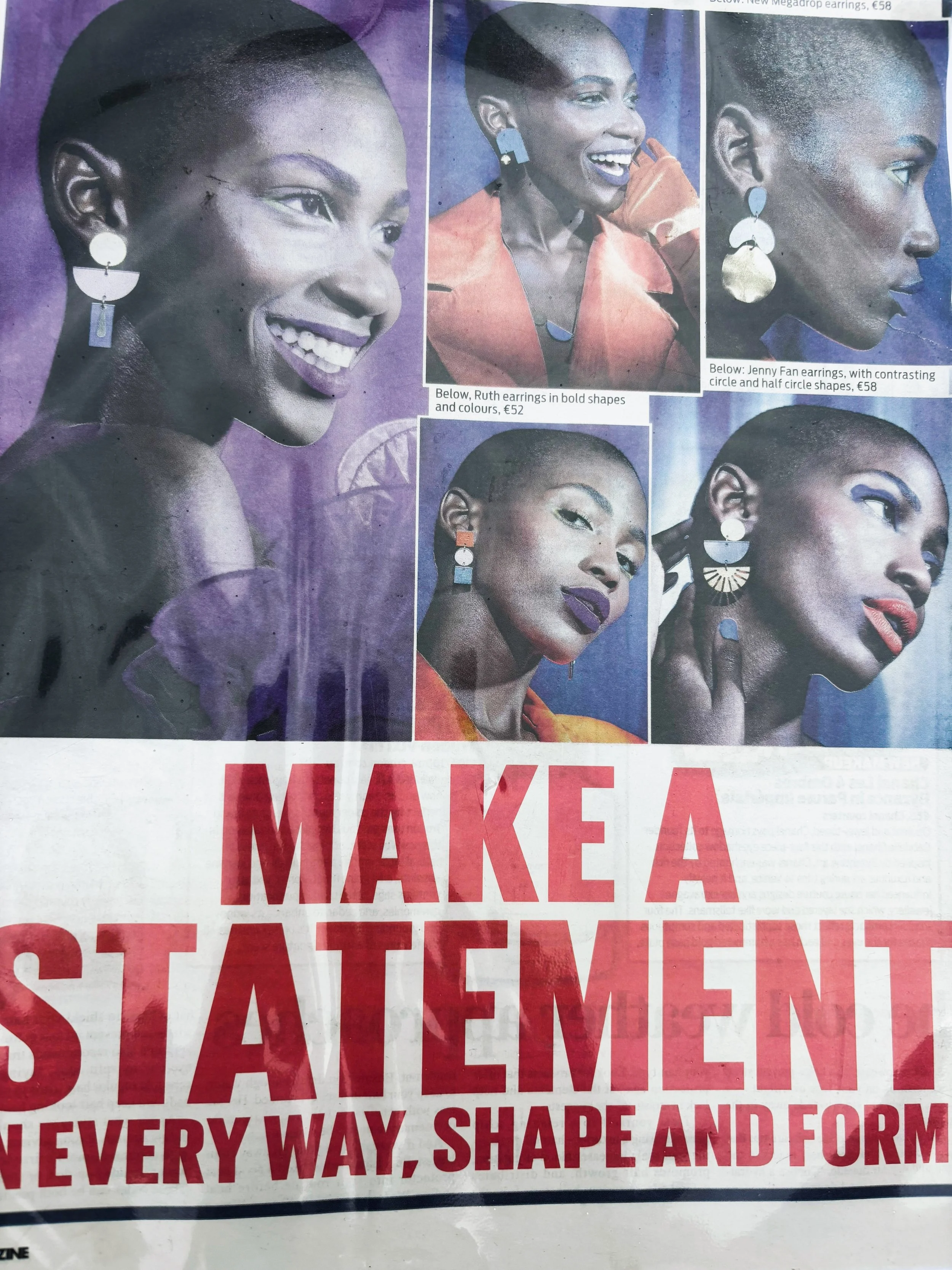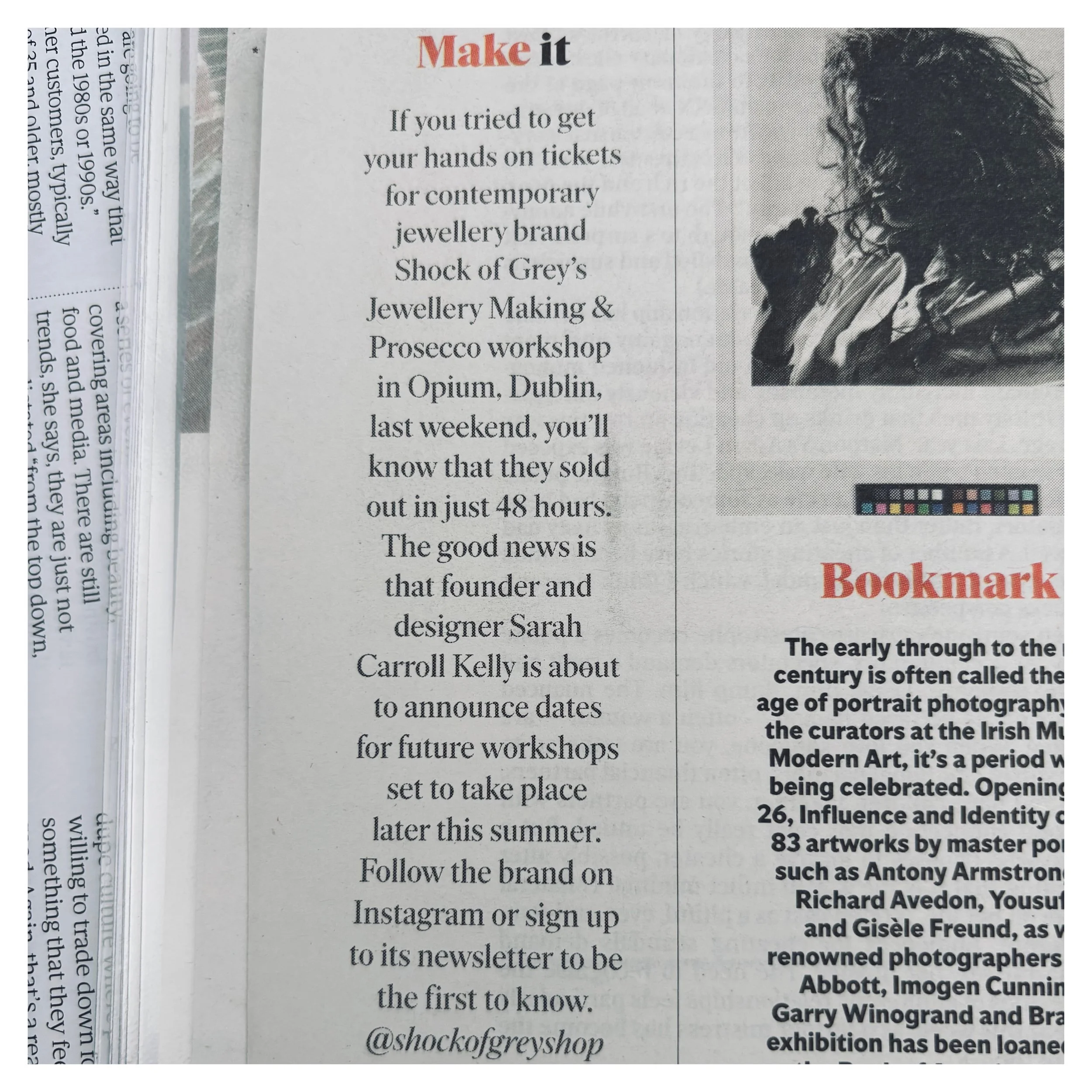 Shock of Grey on Dublin Bus. Design Ireland Shop in Arnotts 2025- Galaxy Necklace and moon studs