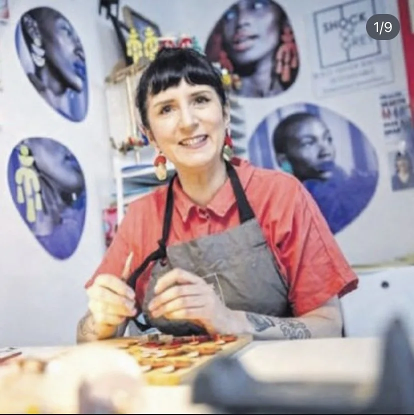 We do make your own earrings or necklace workshop with Sarah. We will show you our process and you will work with wood, brass and pure colour to create Shock of Grey Statement earrings or necklace!